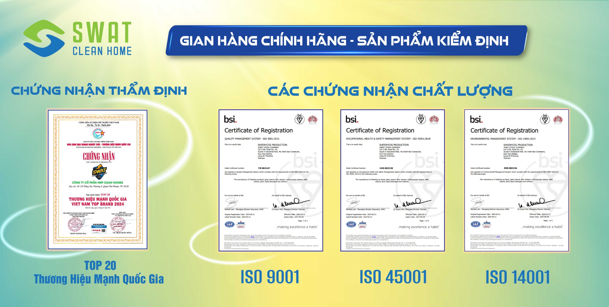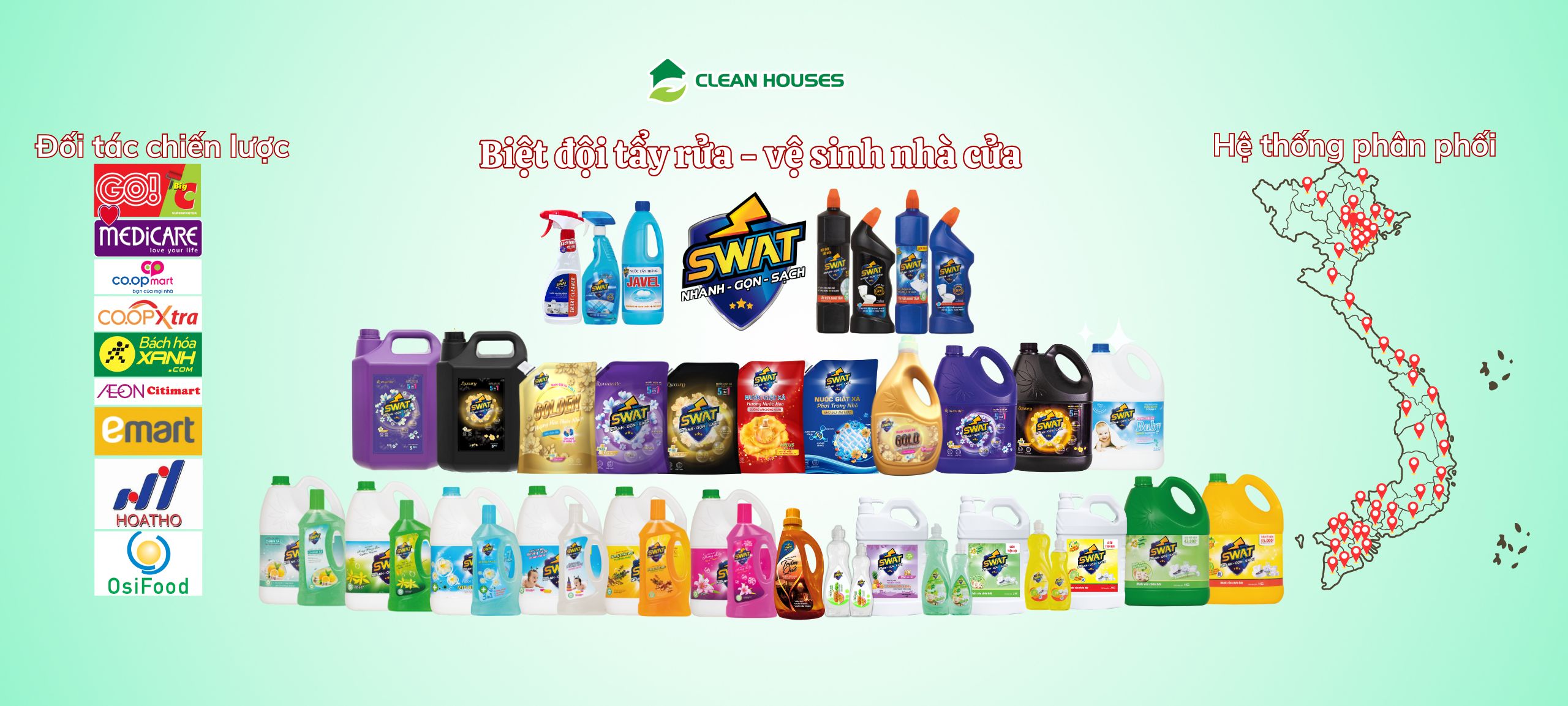 CÔNG TY CỔ PHẦN SWAT CLEAN HOME – Nhà sản xuất và kinh doanh các mặt hàng hóa phẩm tẩy rửa và vệ sinh gia dụng.