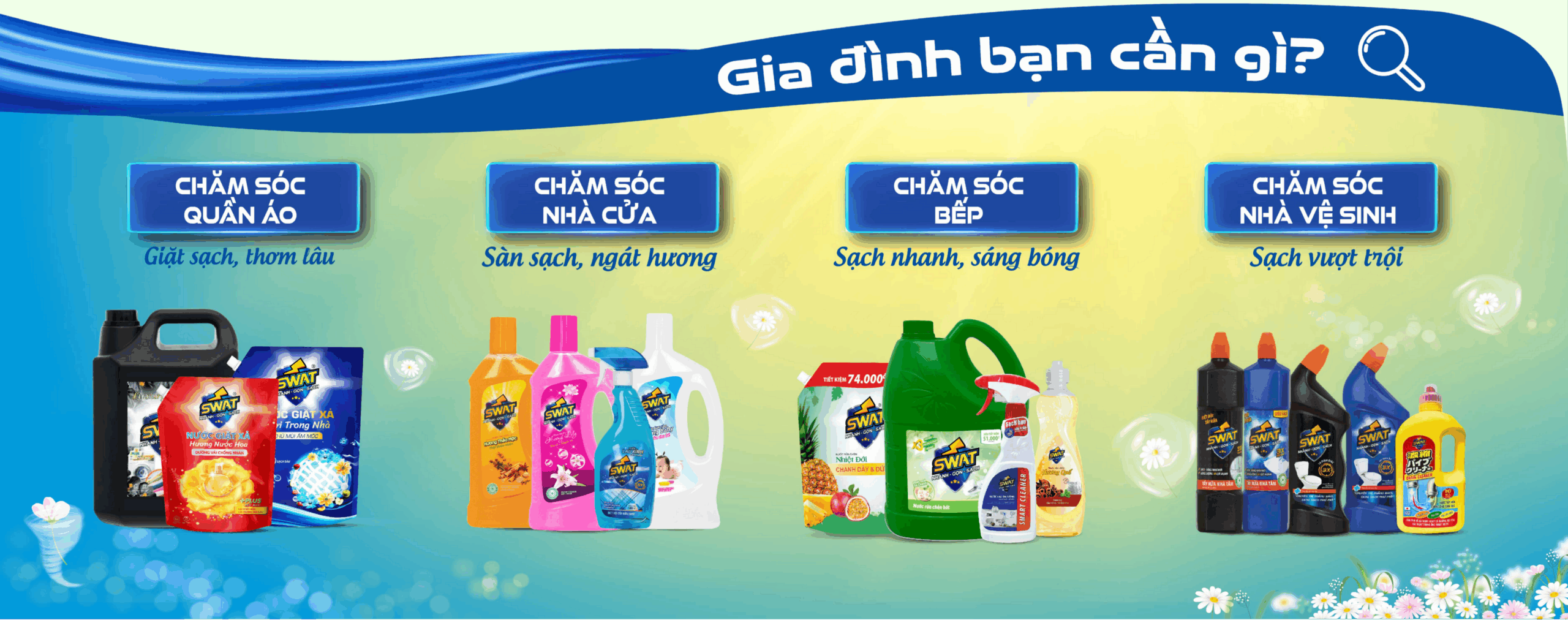 SWAT CLEAN HOME tự hào là đơn vị sản xuất các dòng sản phẩm chăm sóc vệ sinh nhà cửa đa dạng, uy tín và chất lượng cao